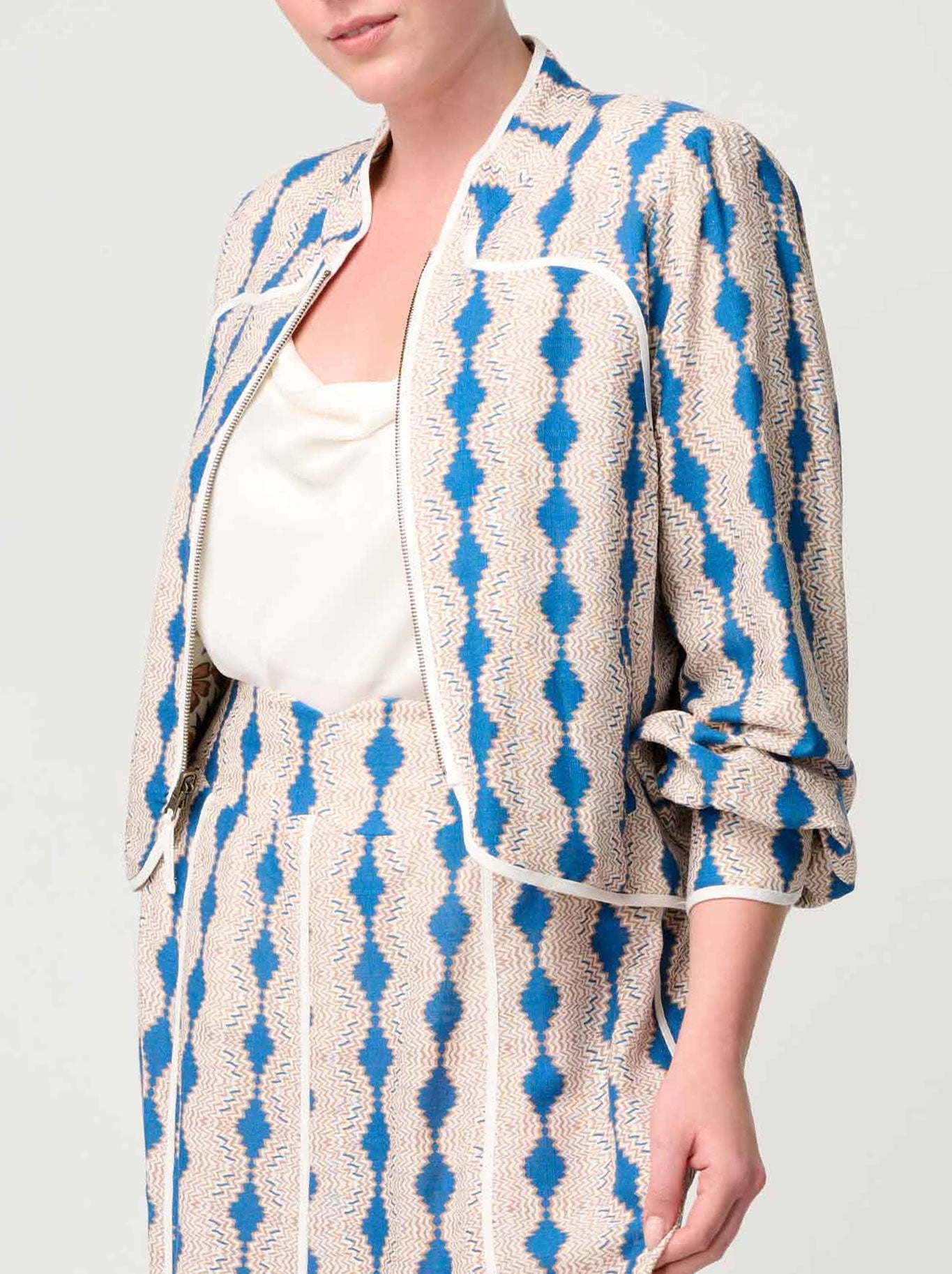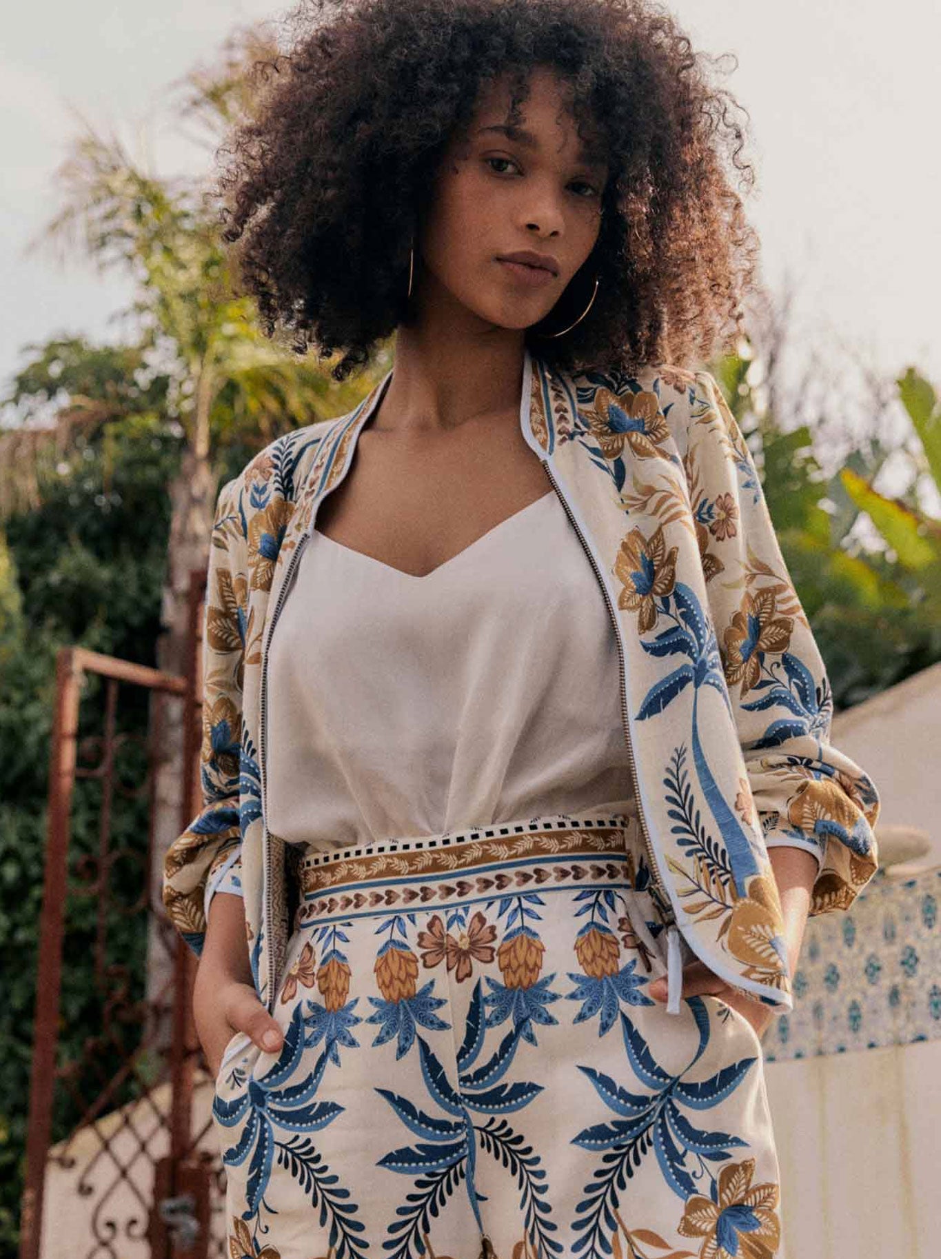 Finished with delicate fringe edging and tailored with a structured silhouette, the Aurora Jacket is ideal for dressing up denim or elevating a matching set. Whether worn open or zipped, floral or solid, it’s the piece that will take you seamlessly from brunch to boardwalk.