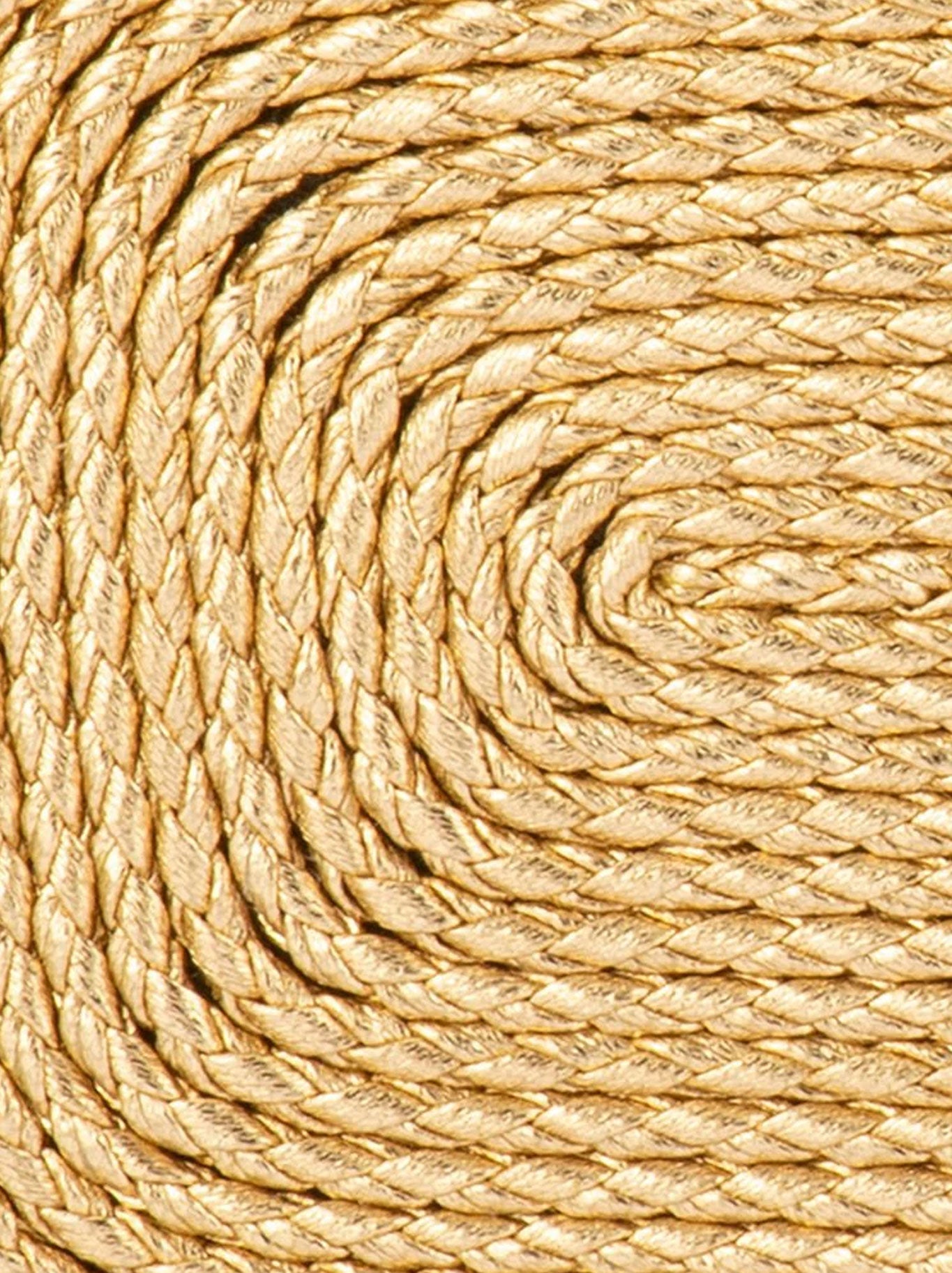 Made from a metallic woven rope and meticulously sewn together using a coiling technique, the Olga Berg Martina Clutch is guaranteed to get noticed. The rounded rectangle shape fits comfortably in the palm of your hand. Wear it as a clutch by tucking the shoulder chain inside or wear it as a shoulder bag for those hands free moments.