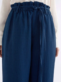 The Elk Stolt Pant features a high-rise paperbag waist and straight leg silhouette. Crafted from a speciality woven fine stripe TENCEL™ Lyocell with a soft, lightweight hand feel and seersucker texture with breathable comfort. The elasticated waist is further defined with a fine fabric belt. Pair with a plain tee or your favourite blouse for an easy go-to look.