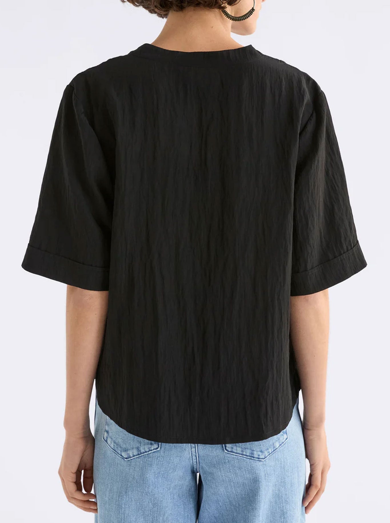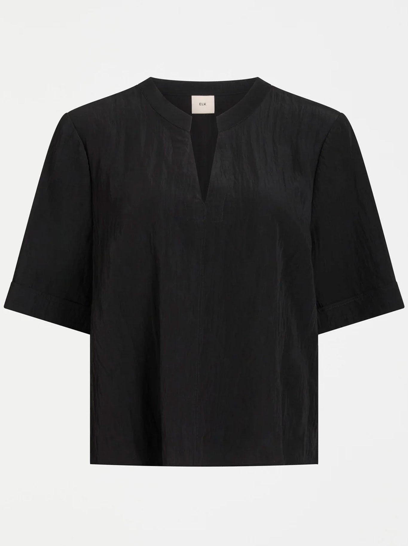The Elk Kysten Top is a classic, understated, day-to-evening top with thoughtful touches. Crafted from a speciality silky soft, crinkle-effect responsibly sourced viscose blend, this top has a round collar and flattering v-neckline with centre front seam to elongate and flatter. Finished with cuffed wide sleeves and mini side splits. Pair this slightly cropped design with your favourite denim or tailored pants.