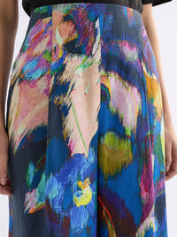 The Elk Lato Pant showcases the vibrant Vaara Print on a beautiful French linen. These high-waisted pants feature a tailored design with front tucks adding interest and comfort to this straight wide leg design. Back darts shape and cinch waist for tailored fit, while the invisible side seam zip creates clean lines. Style with a block-coloured tops and shirts to let the vibrant print do the talking