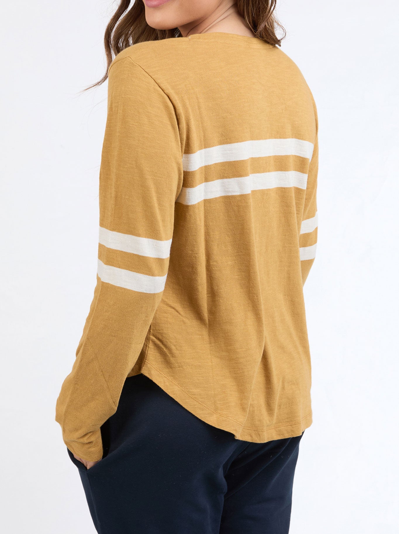 Classic and fun the, Adora Long Sleeve Tee features chest stripes and cute Elm embroidery. Layer her up or wear by itself this is a wonderful wardrobe staple.