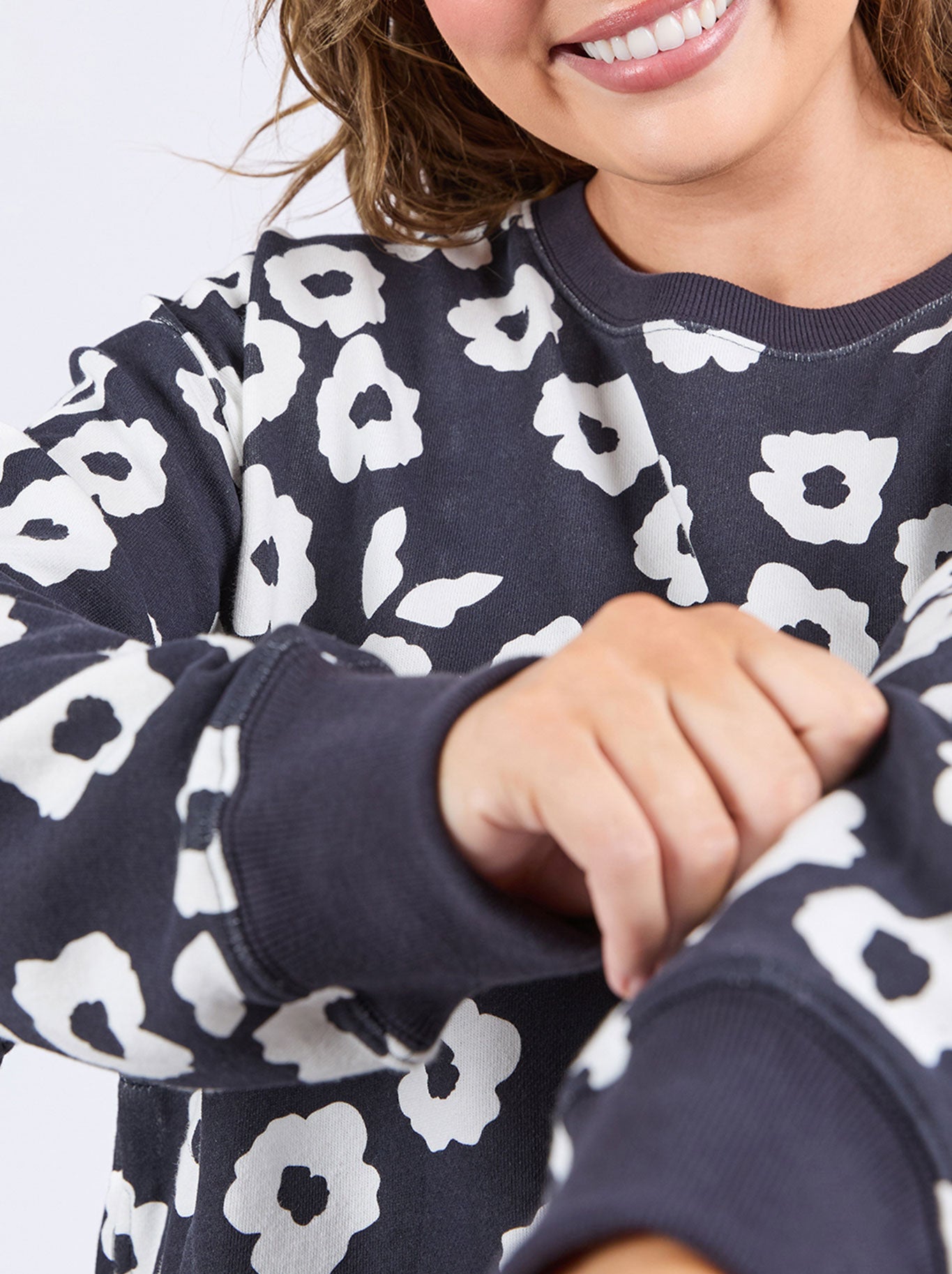 The Elm Azalea Crew is a relaxed, cotton sweat top with dropped shoulders, ribbed hems and side splits for comfort and movement. Elm’s exclusive Azalea print takes centre stage and gives a fun, everyday vibe.