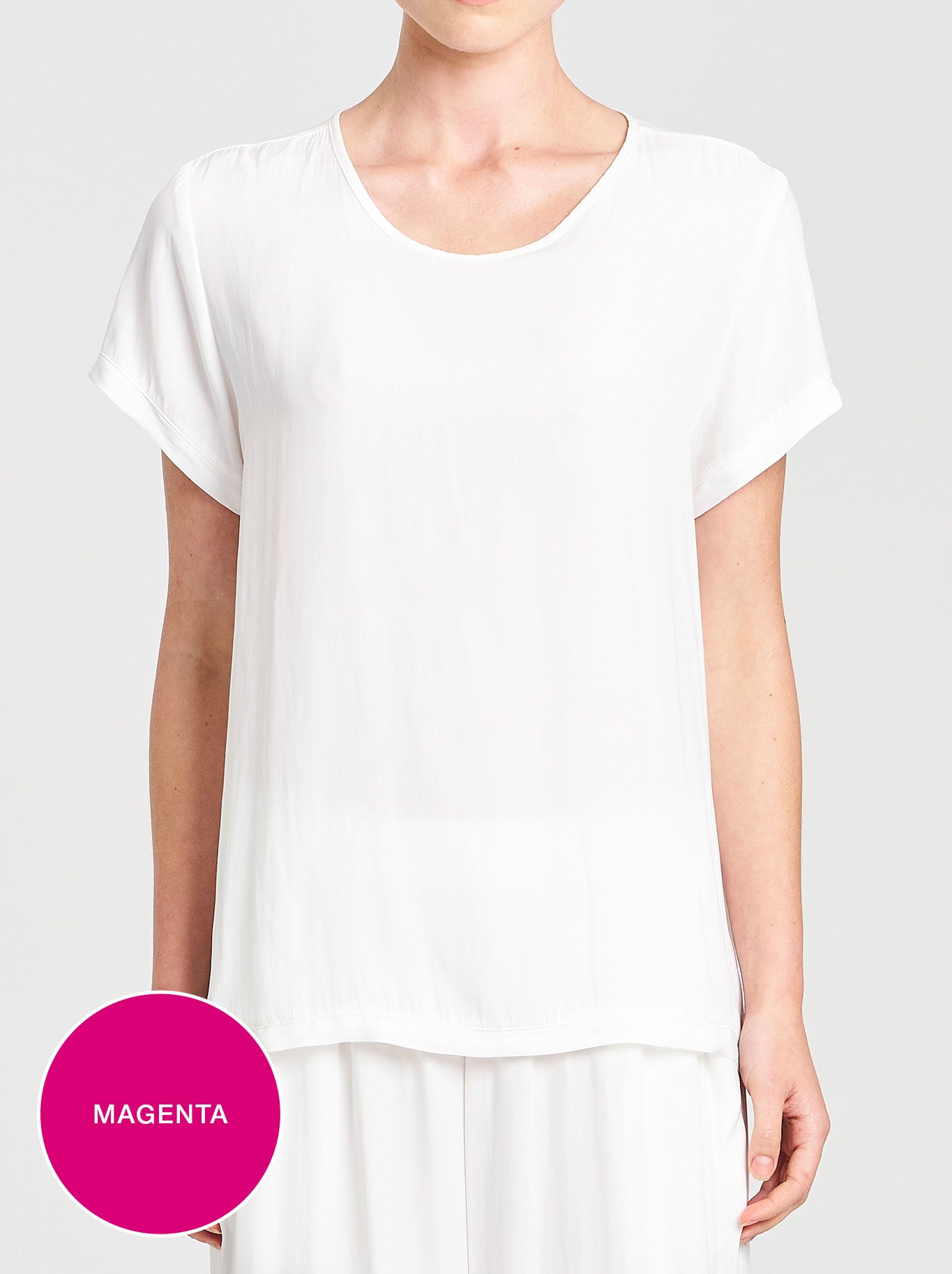 This beautiful basic is crafted from Mela Purdie's signature machè fabrication, has a silk like touch, is lightweight, and soft and breathable against the skin.