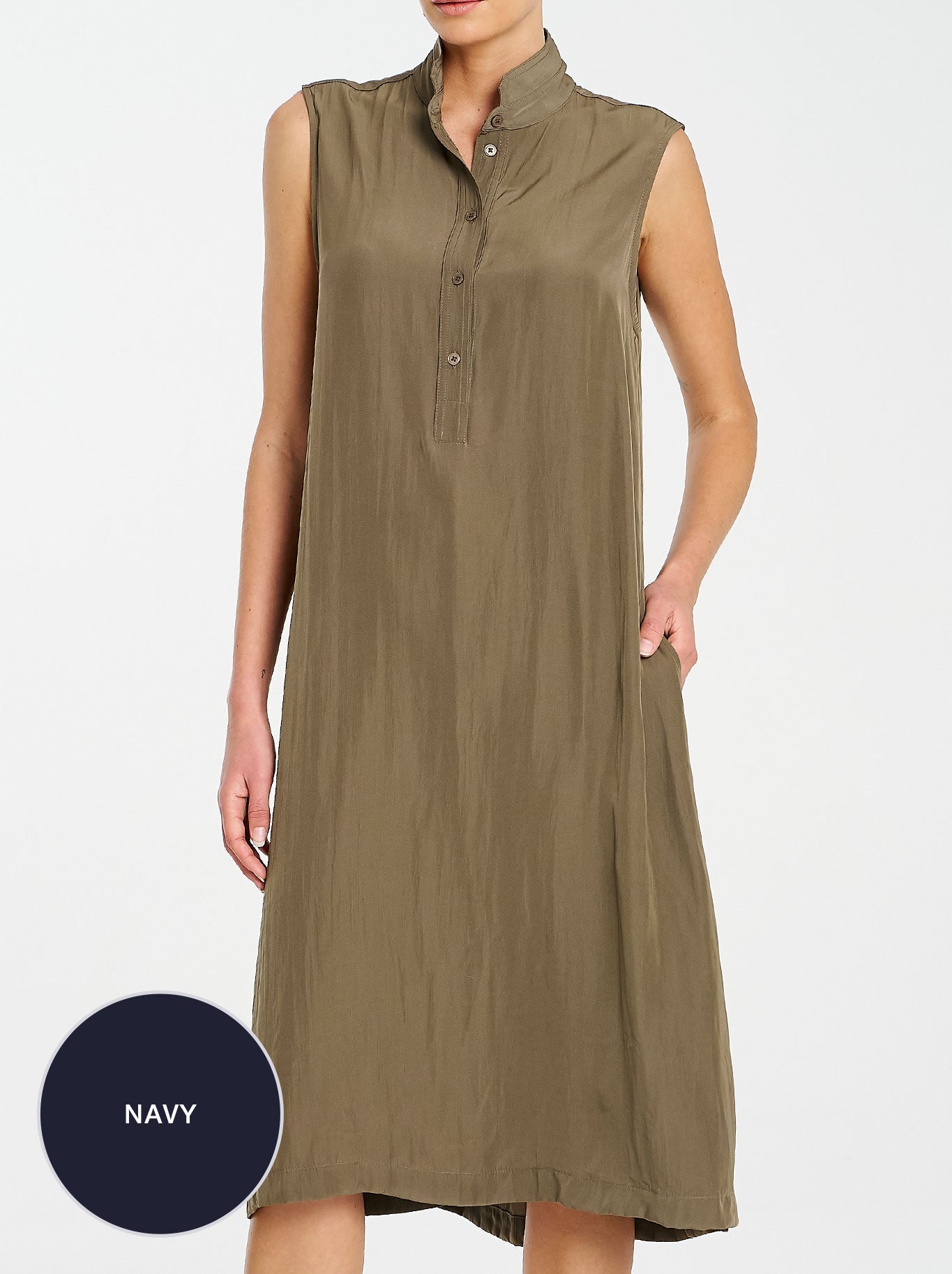 Crafted from Mela Purdie's Mache, featuring a relaxed fluidity & smooth lustre surface. The Tab Slide Dress features a crisp collar stand with tab button closure.