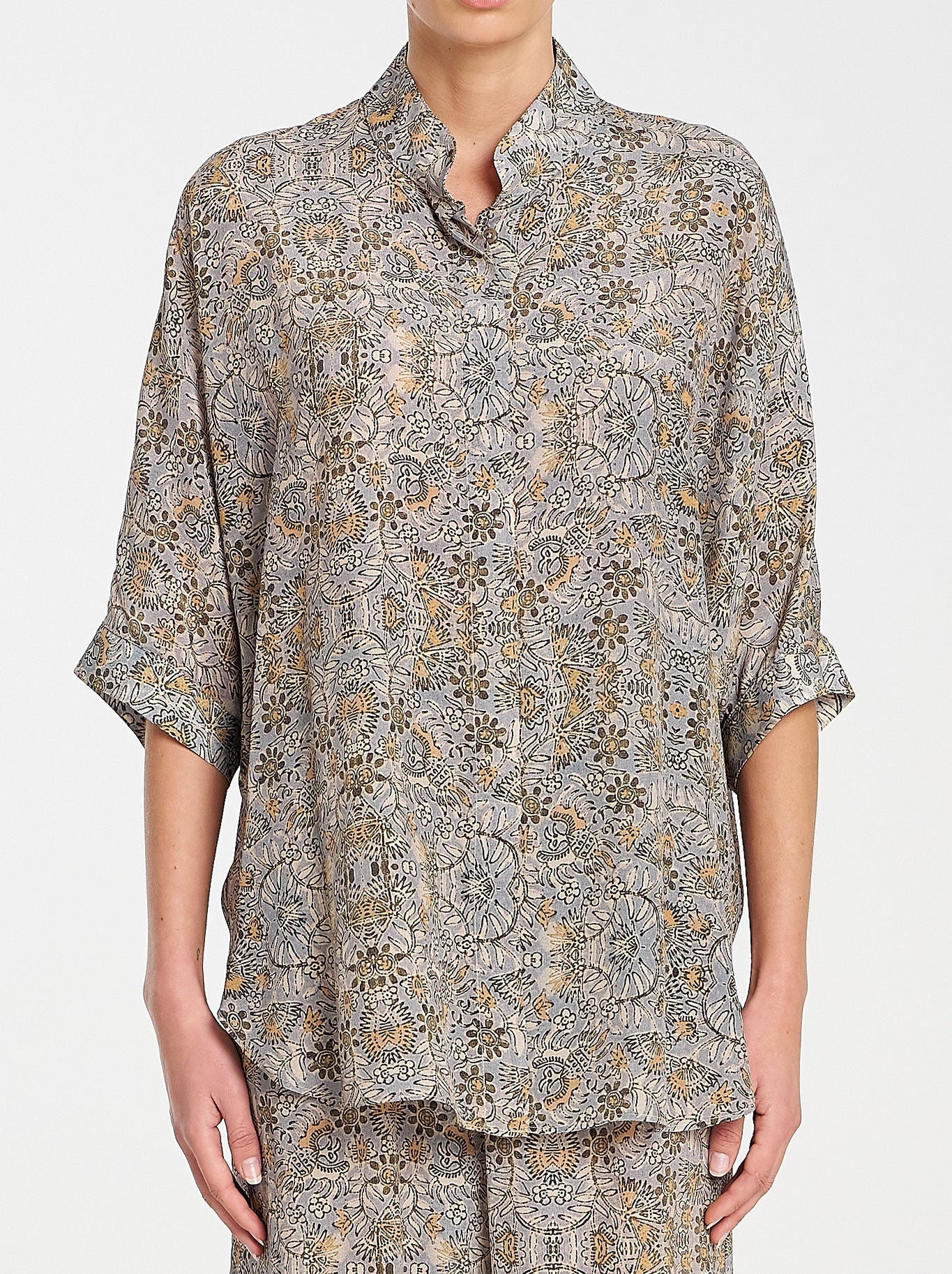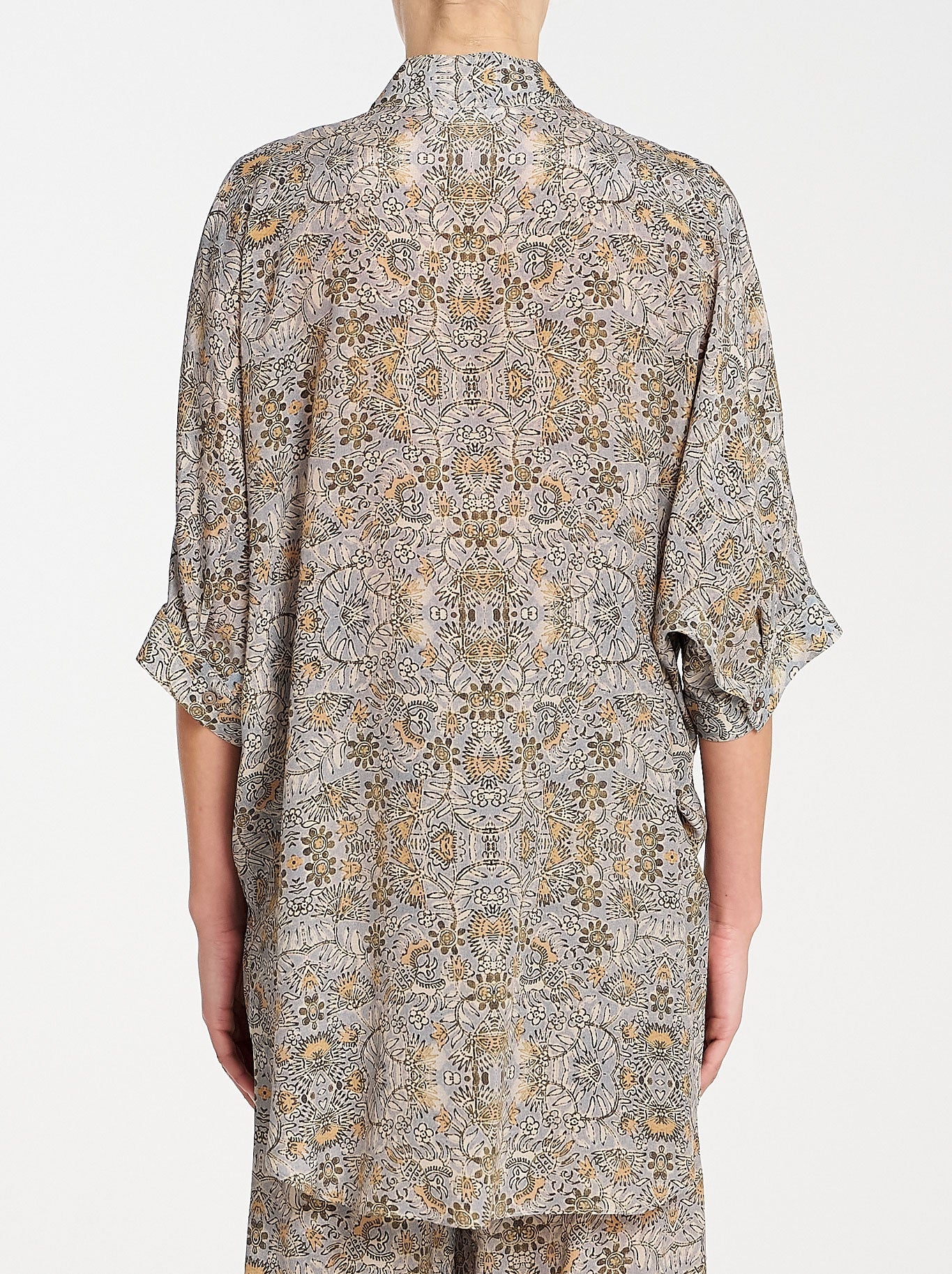 The gorgeous Villa Overshirt is crafted from Mela Purdie's luxurious Silk Crepe De Chine with the stunning 'spinifex' print.  This shirt is an elevated summer staple, featuring a wide batwing sleeve and soft v neckline.