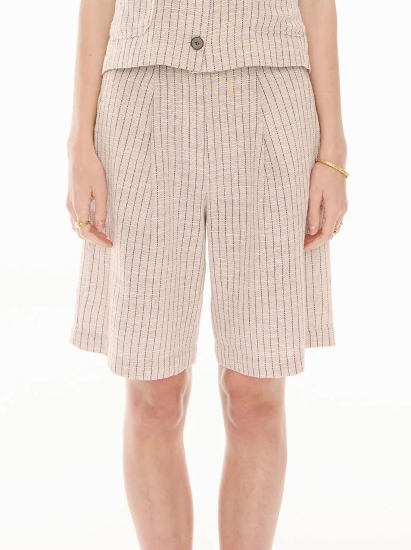 Made from a luxe textured linen cotton pinstripe, the Maya Tailored Shorts by POL are an elevated take on a Summer essential. Complete your outfit with the matching Maya Vest for a chic, fashion-forward ensemble that’s easy to wear and full of personality.