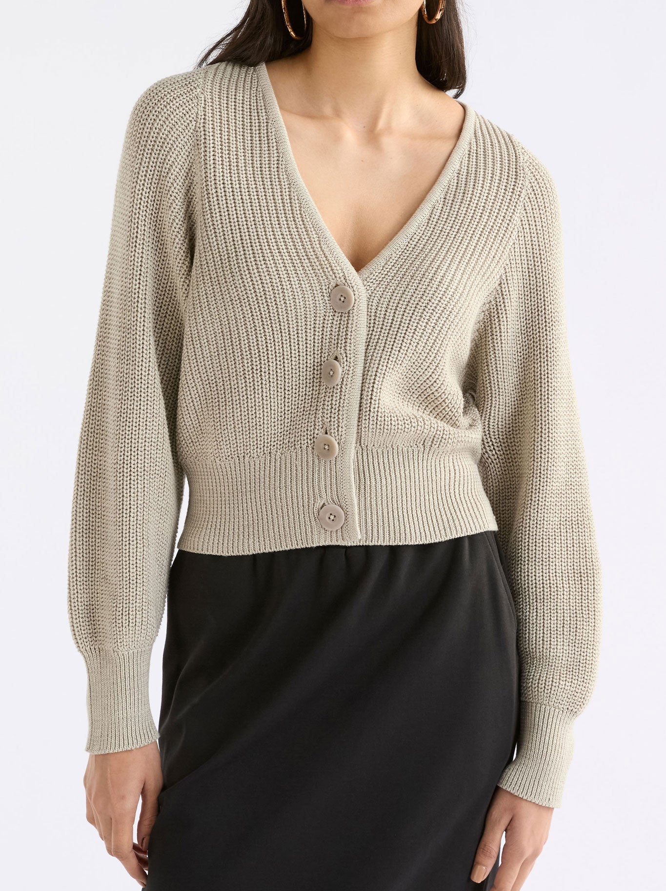 The Elk Saari Cardigan is the perfect transseasonal piece. Crafted from a smooth cotton, this cardigan features a V-neck with button-through design and slightly cropped length. Full-length sleeves with dropped shoulders and added volume create relaxed proportions. Finished with wide rib detailing on hem and cuffs. Layer with your favourite denim and tee or with tailored pants, for a more dressed up approach.
