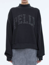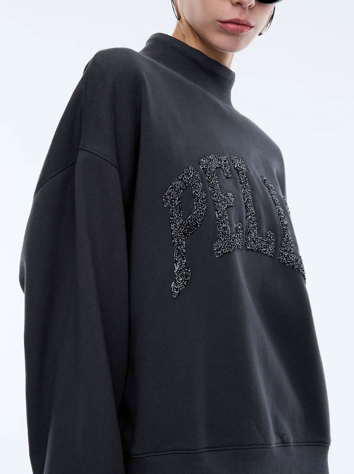 The Ena Pelly Glitter Collegiate Sweatshirt is an oversized cropped sweat, featuring a high neckline and long sleeves for an effortlessly bold look. Made from terry cotton fleece with a vintage-style wash, it offers everyday comfort while the glitter toweling appliqué branding adds a creative, standout detail. Finished with ribbed neckbands and cuffs, this piece embodies streetstyle confidence with a playful edge.