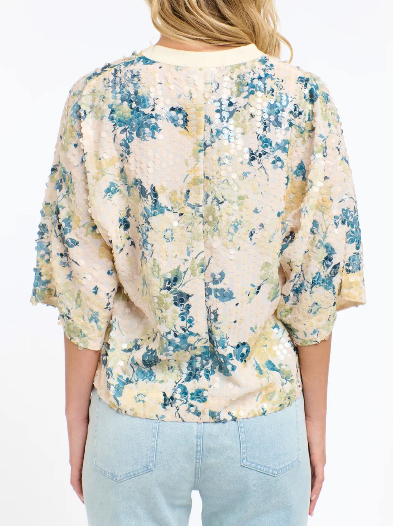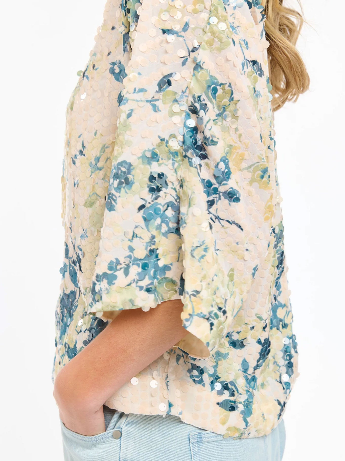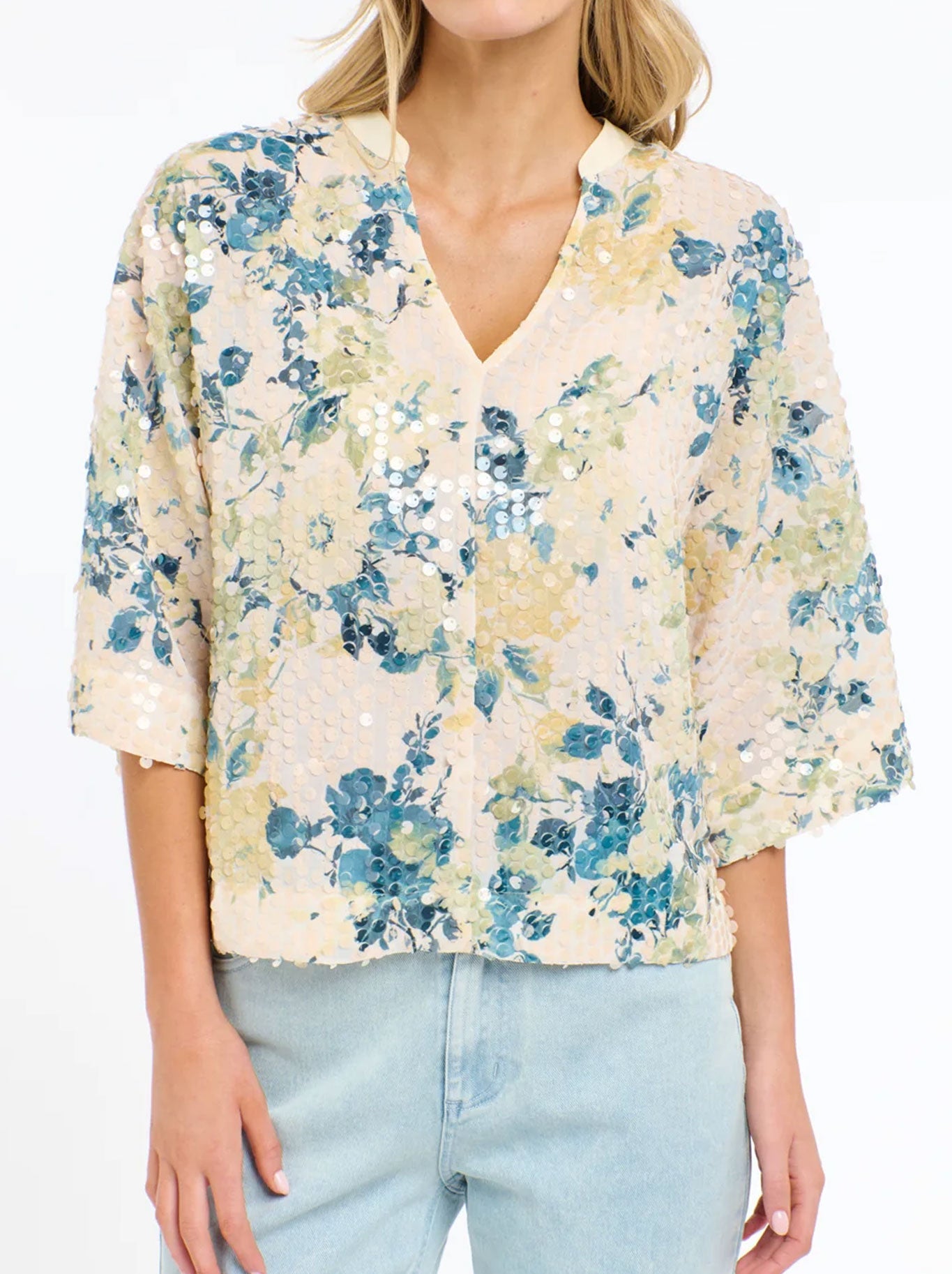 Shimmer meets softness in the 365 Days Geisha Sequins Top. A beautifully subtle floral base catches the light with delicate all-over sequins, while the lightweight feel keeps it wearable from lunch to late. The relaxed cut and clean V-neck sit neatly over denim by day, then dress up with a skirt or tailored pant and a heel at night.