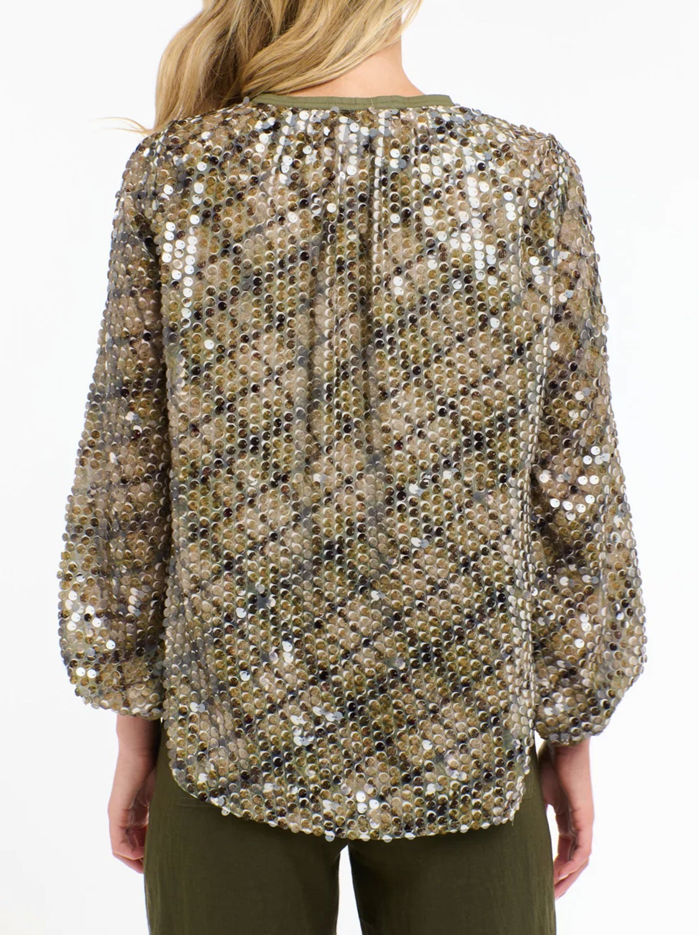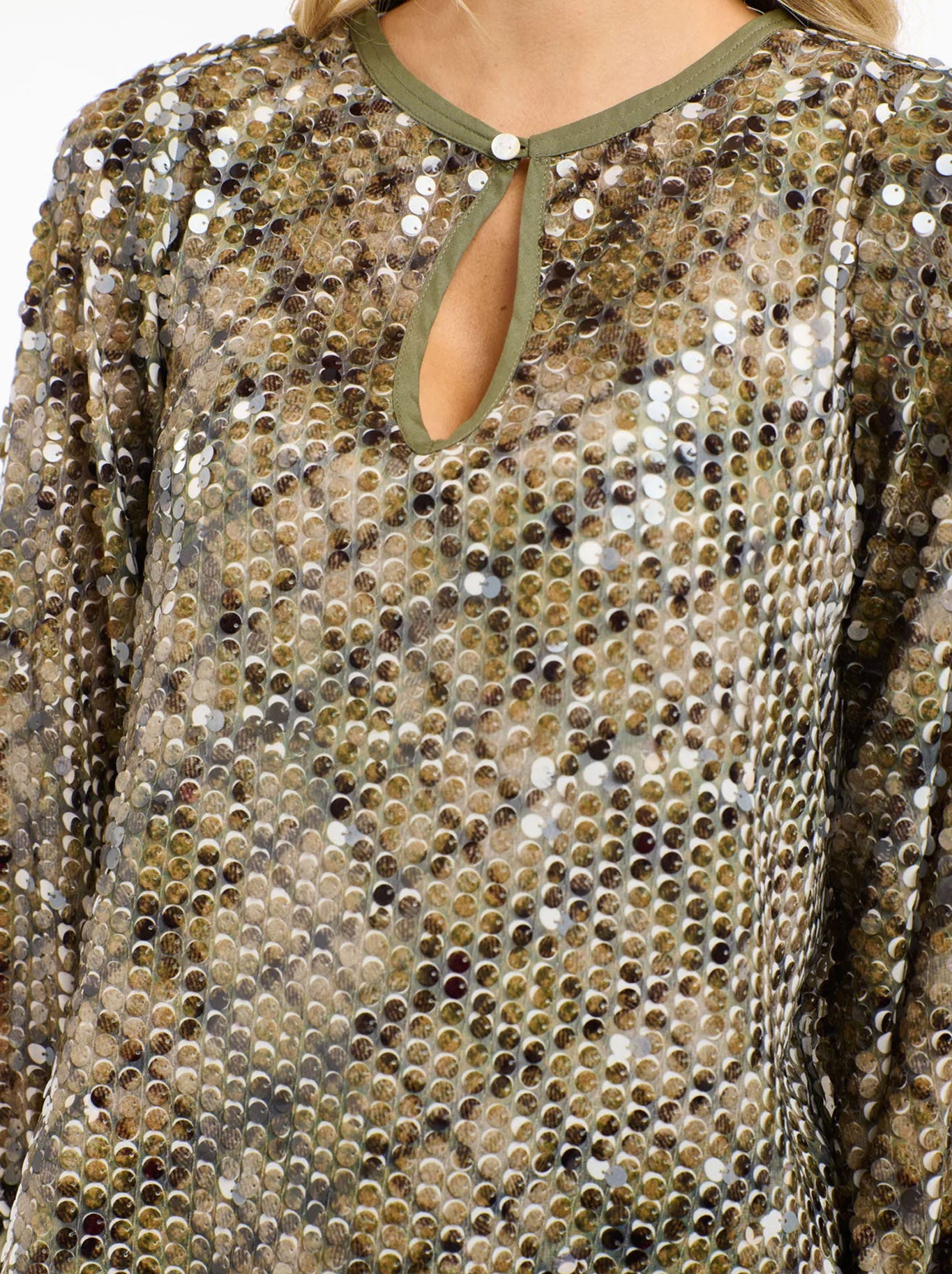 Shimmer with subtlety in this multi-coloured sequin blouse from 365 Days, designed to catch the light in a soft, flattering way. The keyhole neckline and gently gathered cuffs add feminine detail without fuss, while the relaxed fit and fluid drape make it easy from desk to dinner. Wear it with a satin midi for an occasion or downplay the sparkle with light wash denim. A piece that feels special yet stays effortlessly wearable.