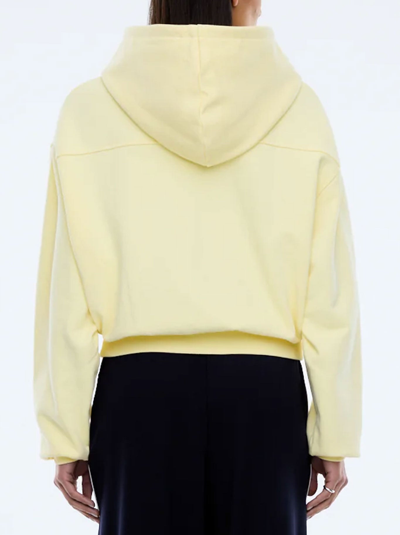 Bold Energy. Vintage Edge. The Ena Pelly Ena Sports Zip Through Hoodie in lemon cotton fleece delivers a relaxed fit with embroidered badges and layered texture. Finished with mixed print techniques that celebrate a modern sports mood.