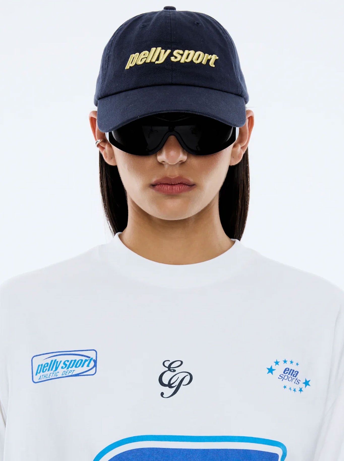 Utility Mood. Elevated Style. The Ena Pelly EP Washed Navy Cap is crafted in soft cotton twill with a vintage wash. Finished with 3D embroidered EP logo for a sport-inspired yet timeless accent.