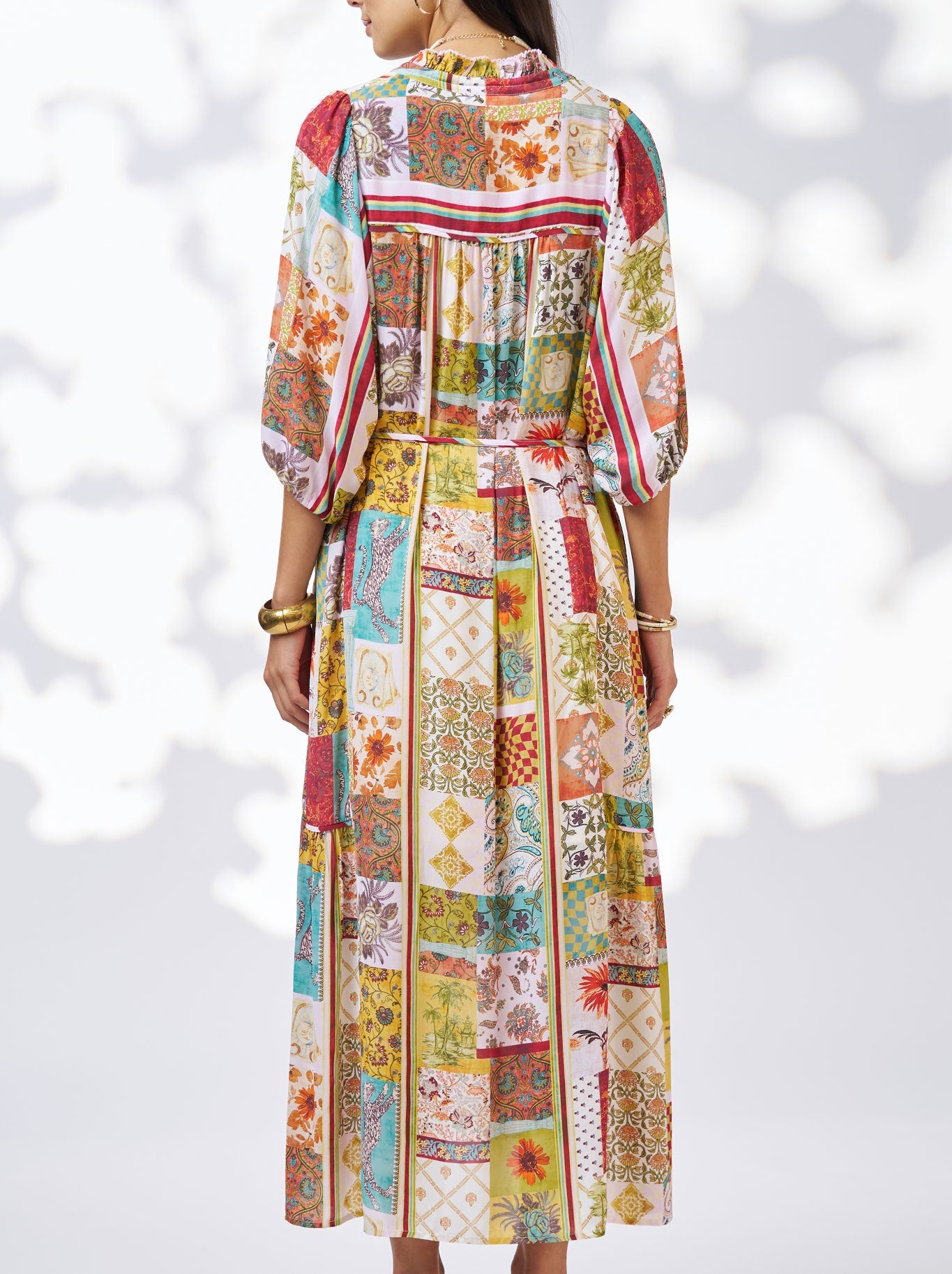 This dress might just be our favourite piece in our beautiful Loobie's Story collection! The Vana Midi Dress features a colourful patchwork of prints, evoking a true Summer feeling we can't get enough of! Designed for a relaxed A-line fit and falling to a mid length hem, this dress is finished with a cropped wide sleeve and in-seam pockets. Comes complete with matching belt for versatile styling.